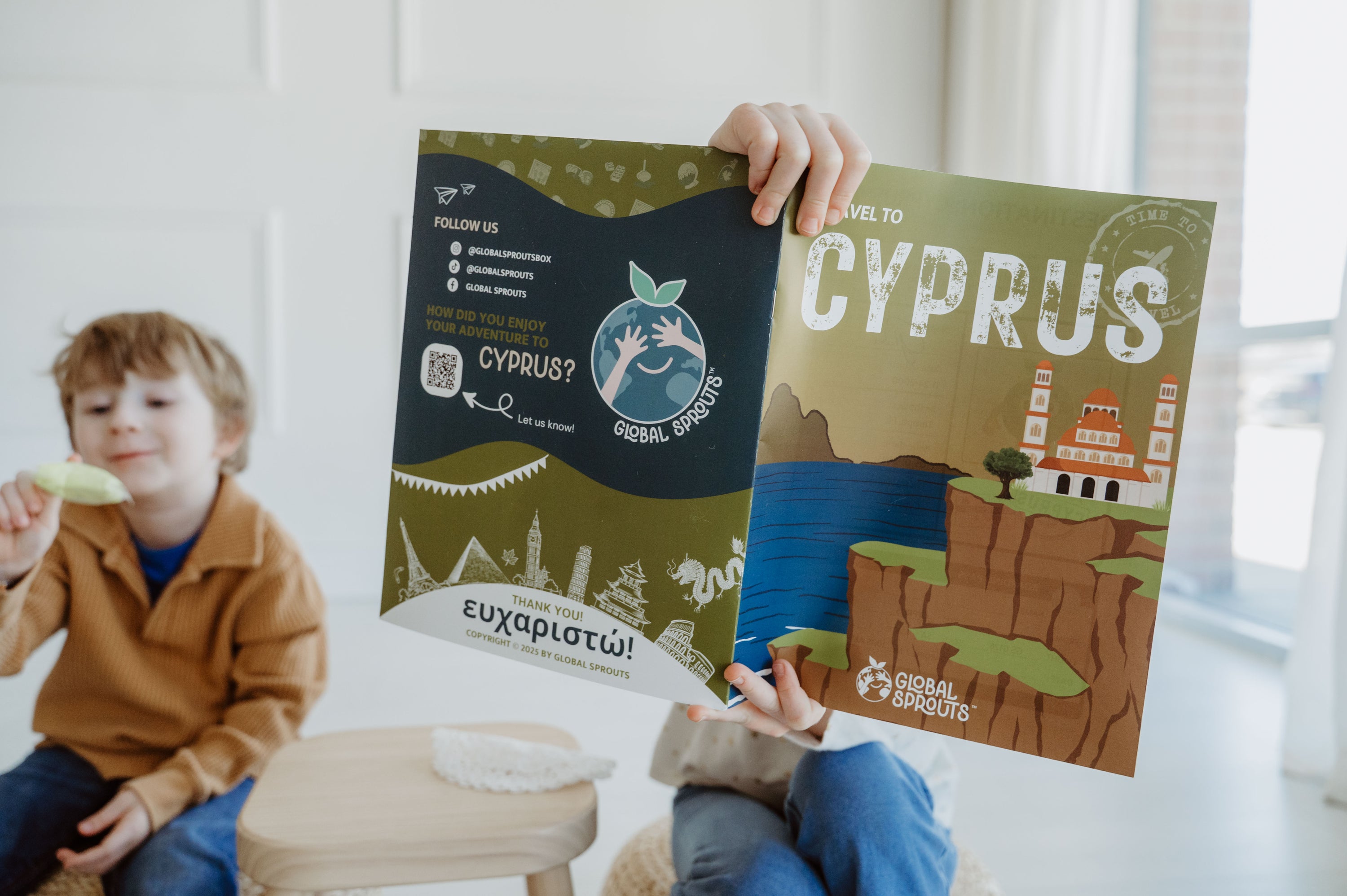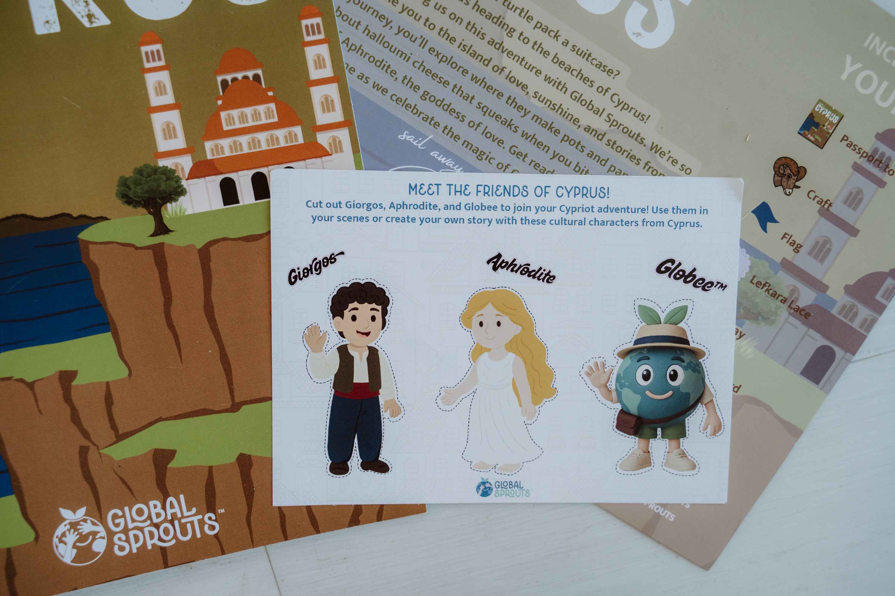 In this kit, your child will journey alongside Globee to meet Aphrodite, discover the art of Lefkara lace, and shape their own red clay creations, all while learning about love, friendship, and the culture of this Mediterranean island.