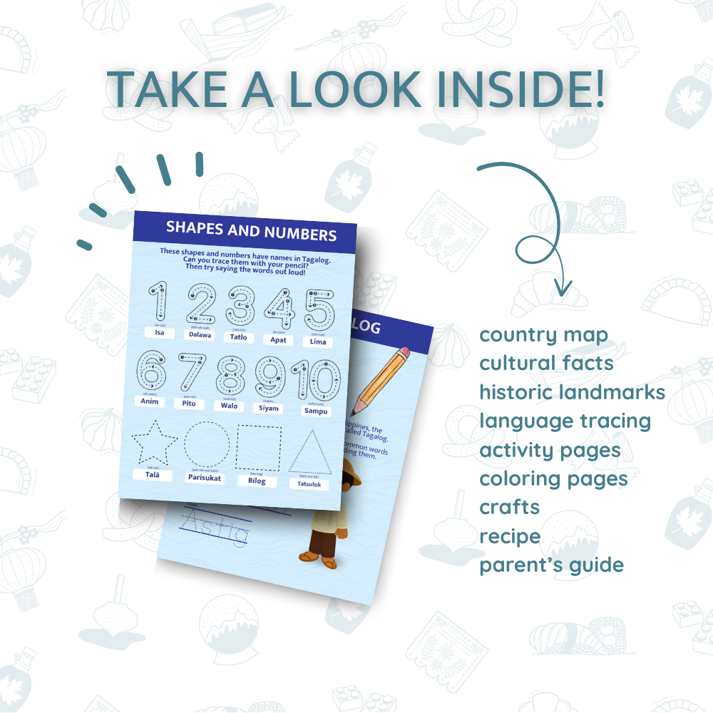 Interactive facts about geography, animals, famous landmarks, foods, and cultural traditions. -